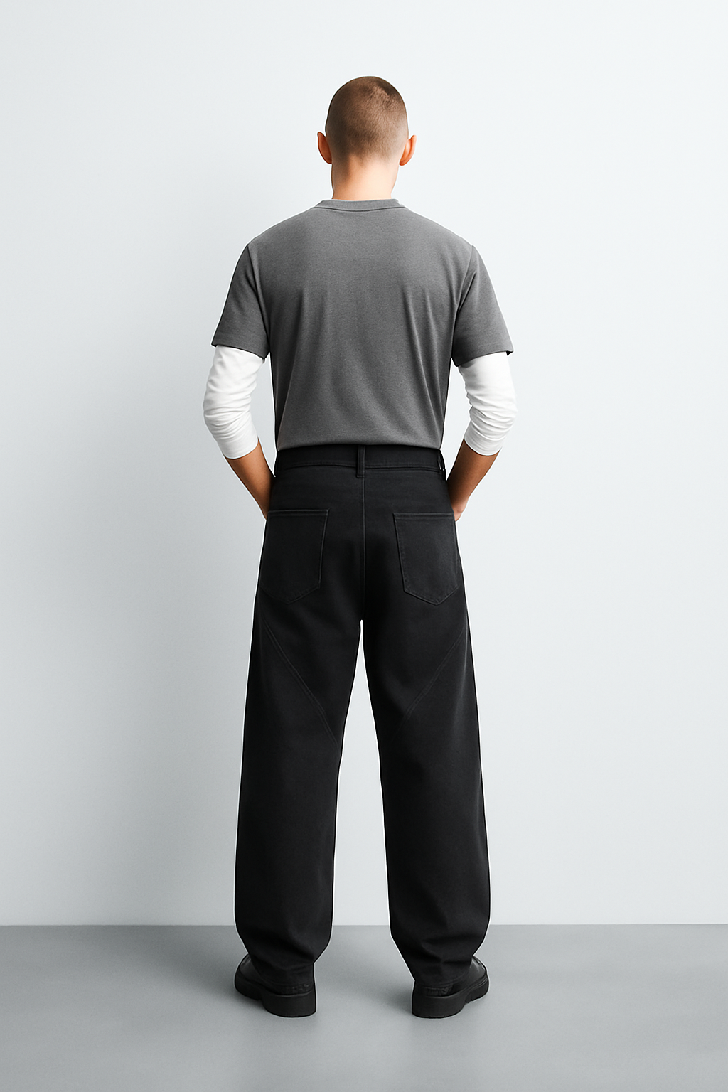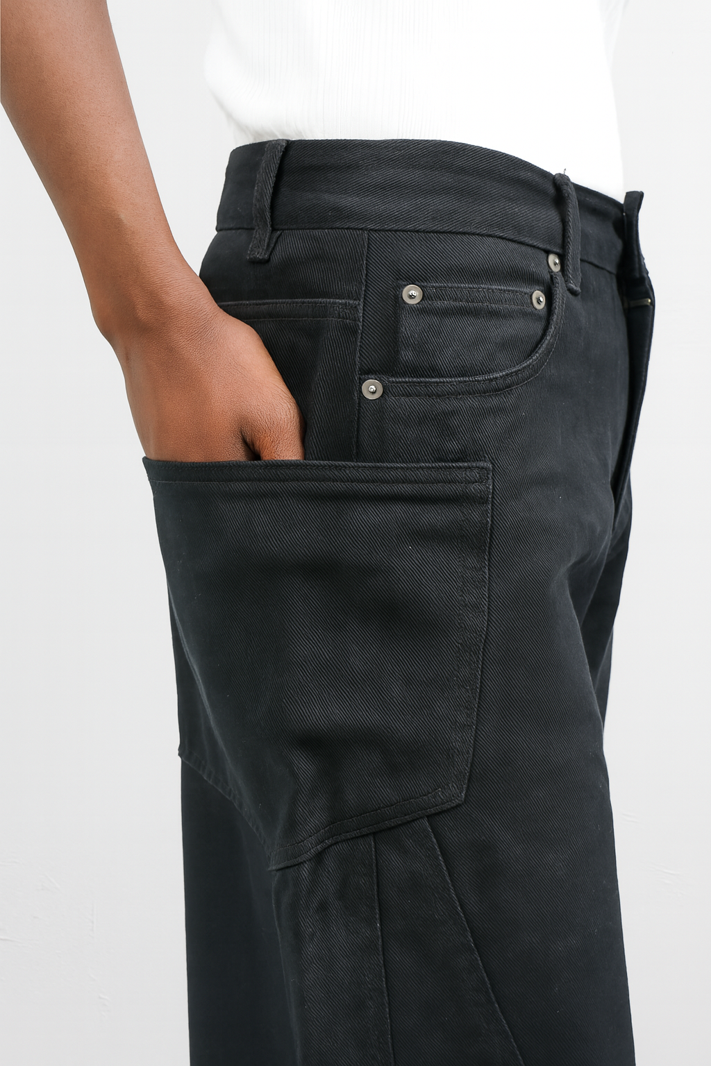 Baggy-fit denim pants in carpenter style with suede finish. Made from 100% cotton with panel detailing for added structure.