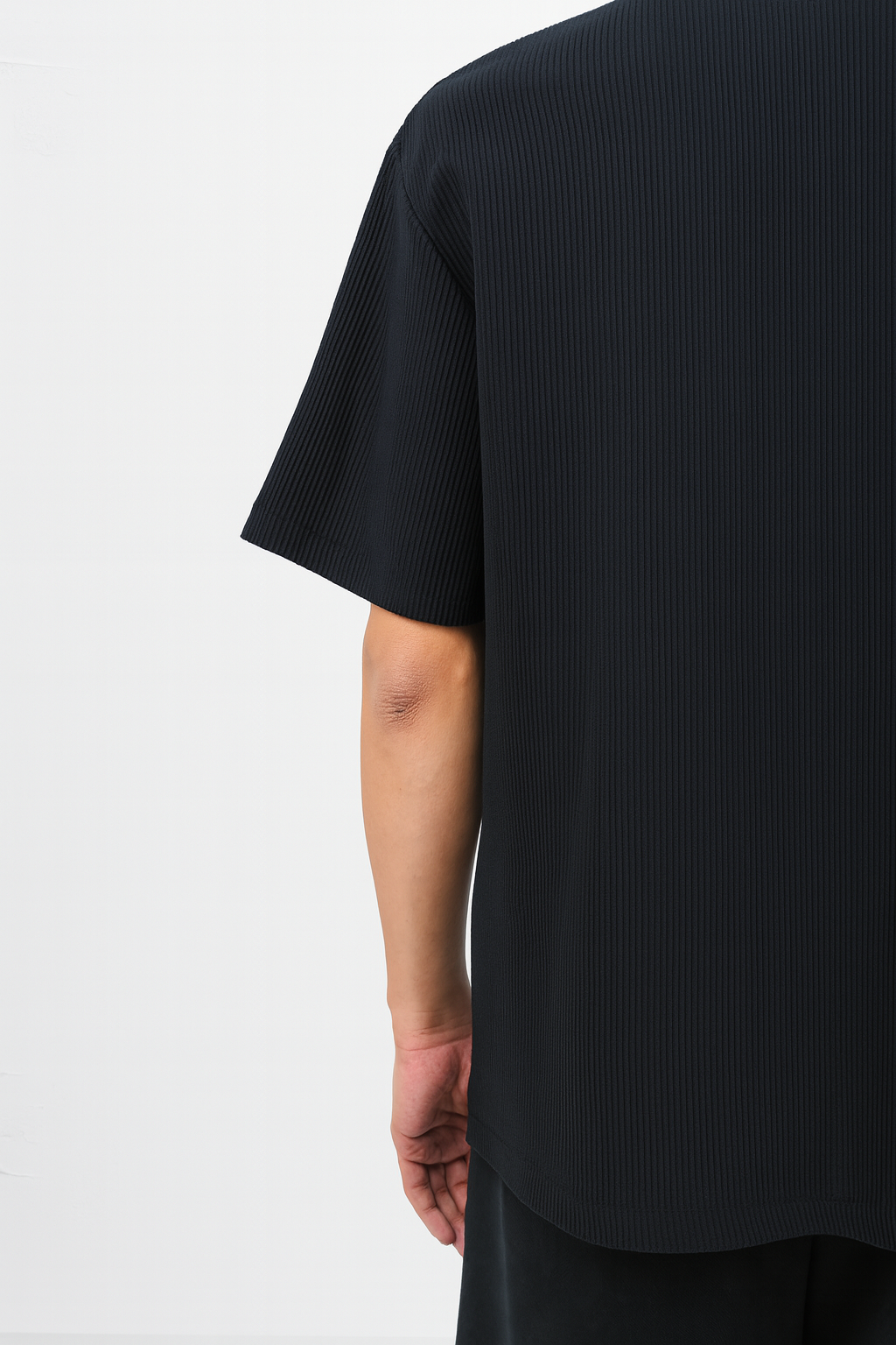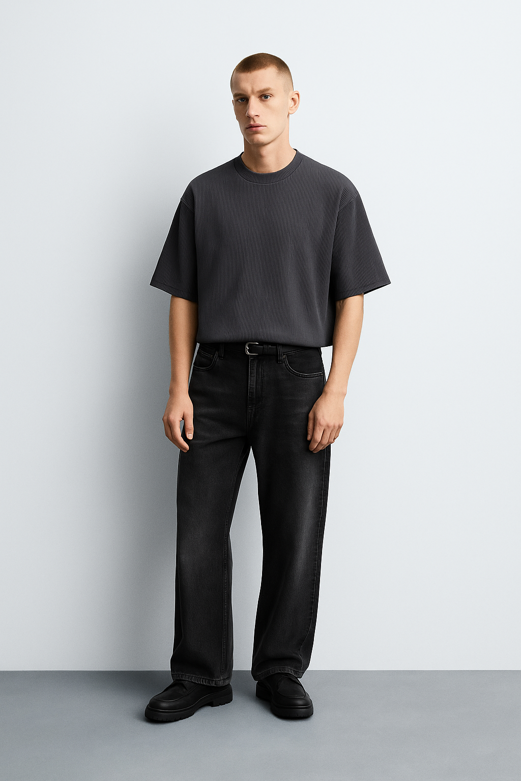 A regular-fit cotton-polyester blend t-shirt with ribbed textured fabric construction.