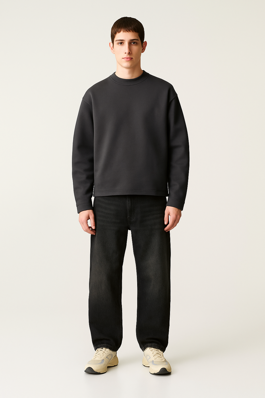 A regular-fit cotton-polyester t-shirt featuring raw edge detailing and double raised neckline.