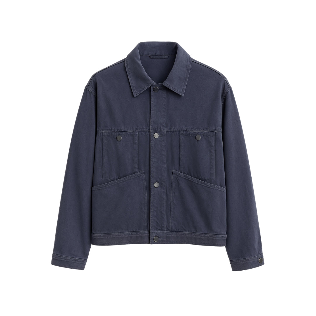 A regular-fit jacket in indigo dyed cotton twill. Features traditional patch pocket detailing.