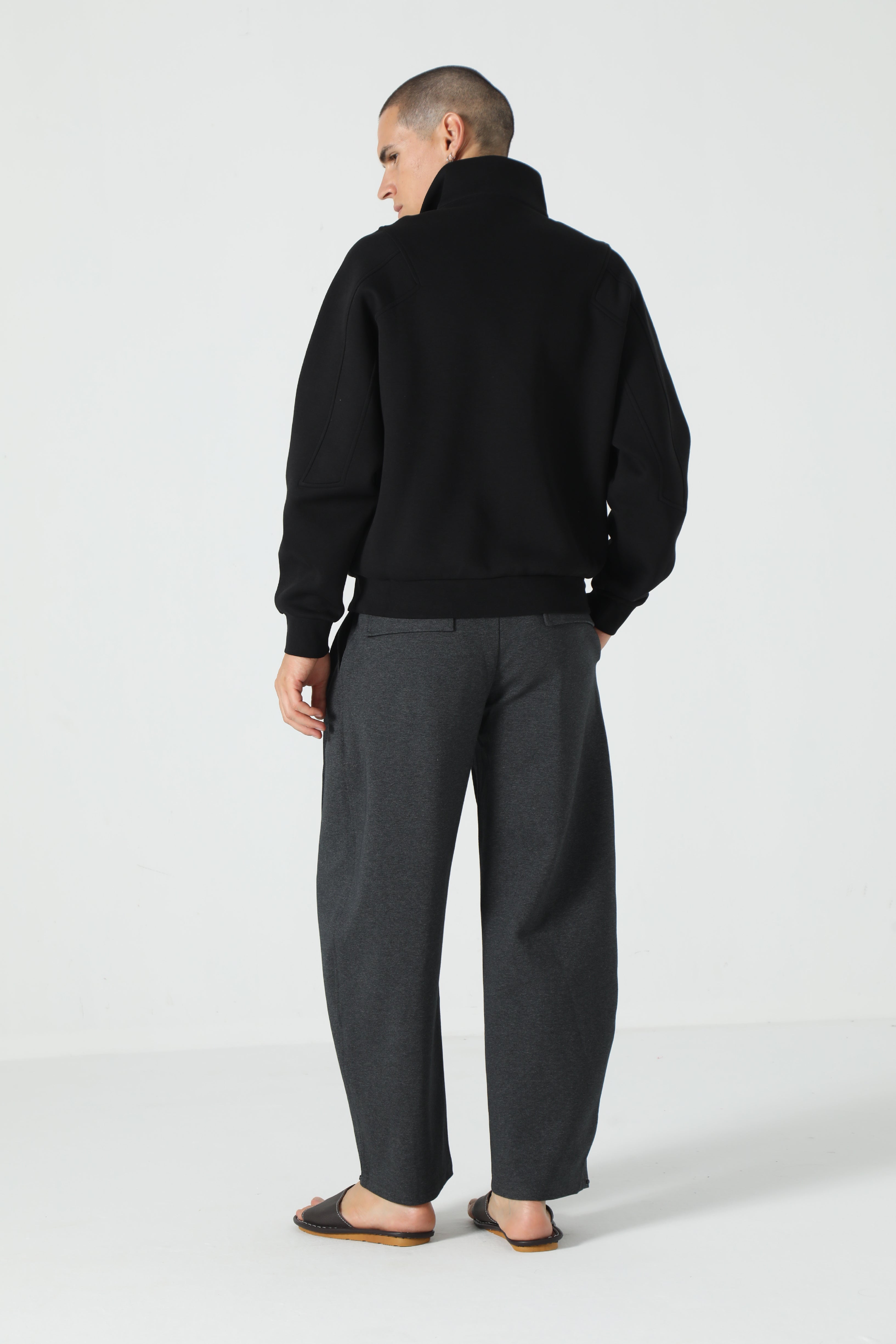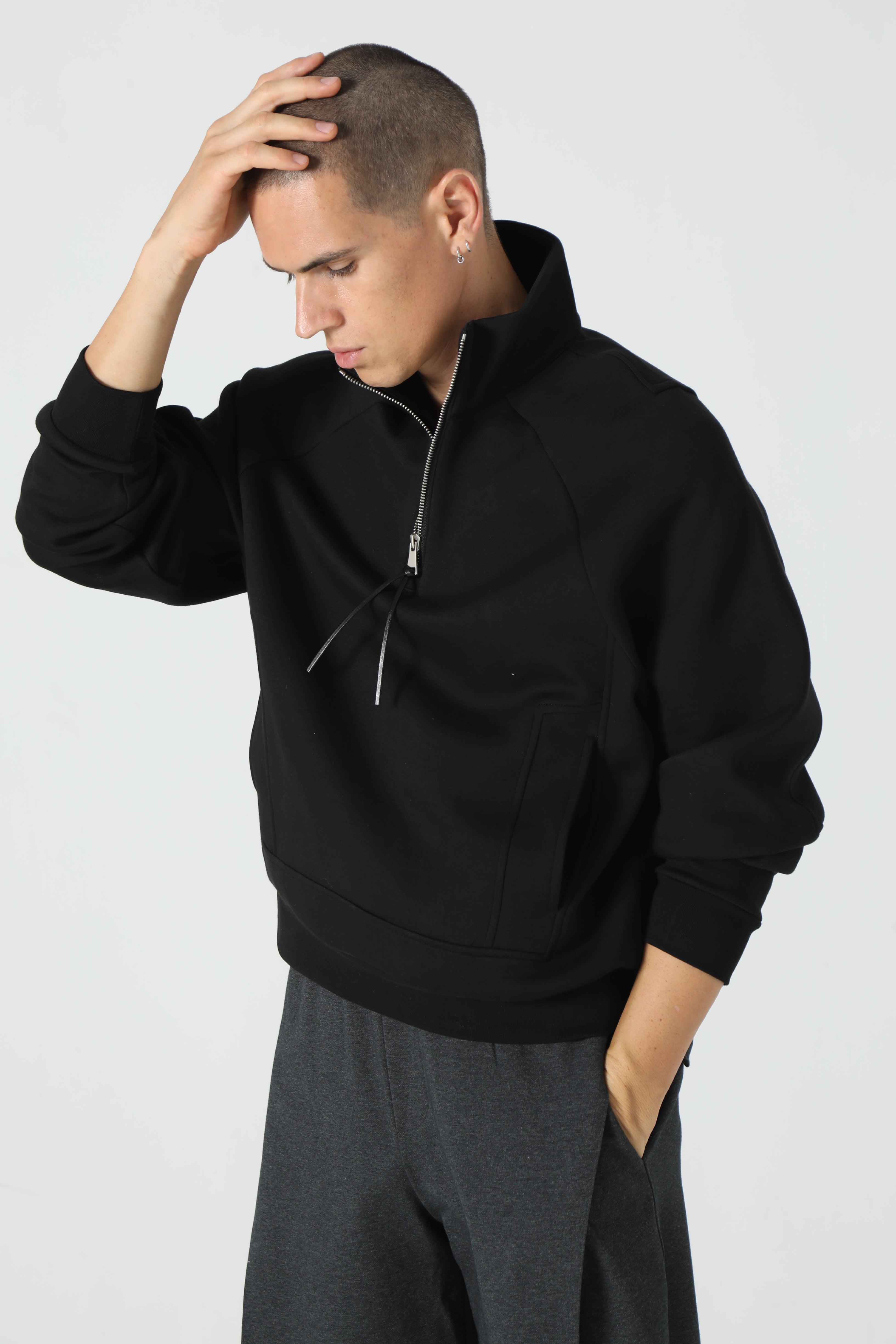 A regular-fit sweatshirt in textured jersey with high-neck design, raglan sleeves, and half-zip closure.