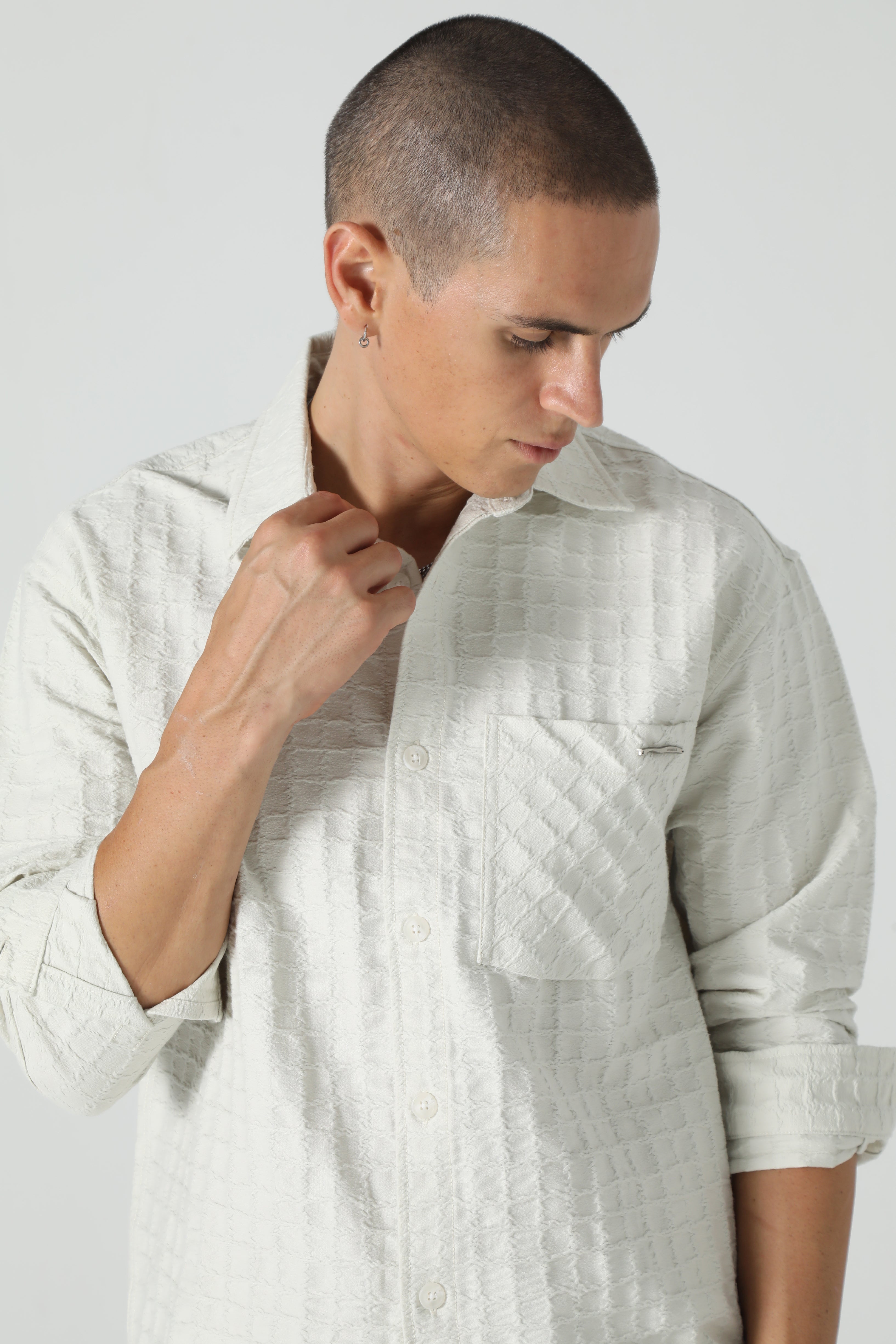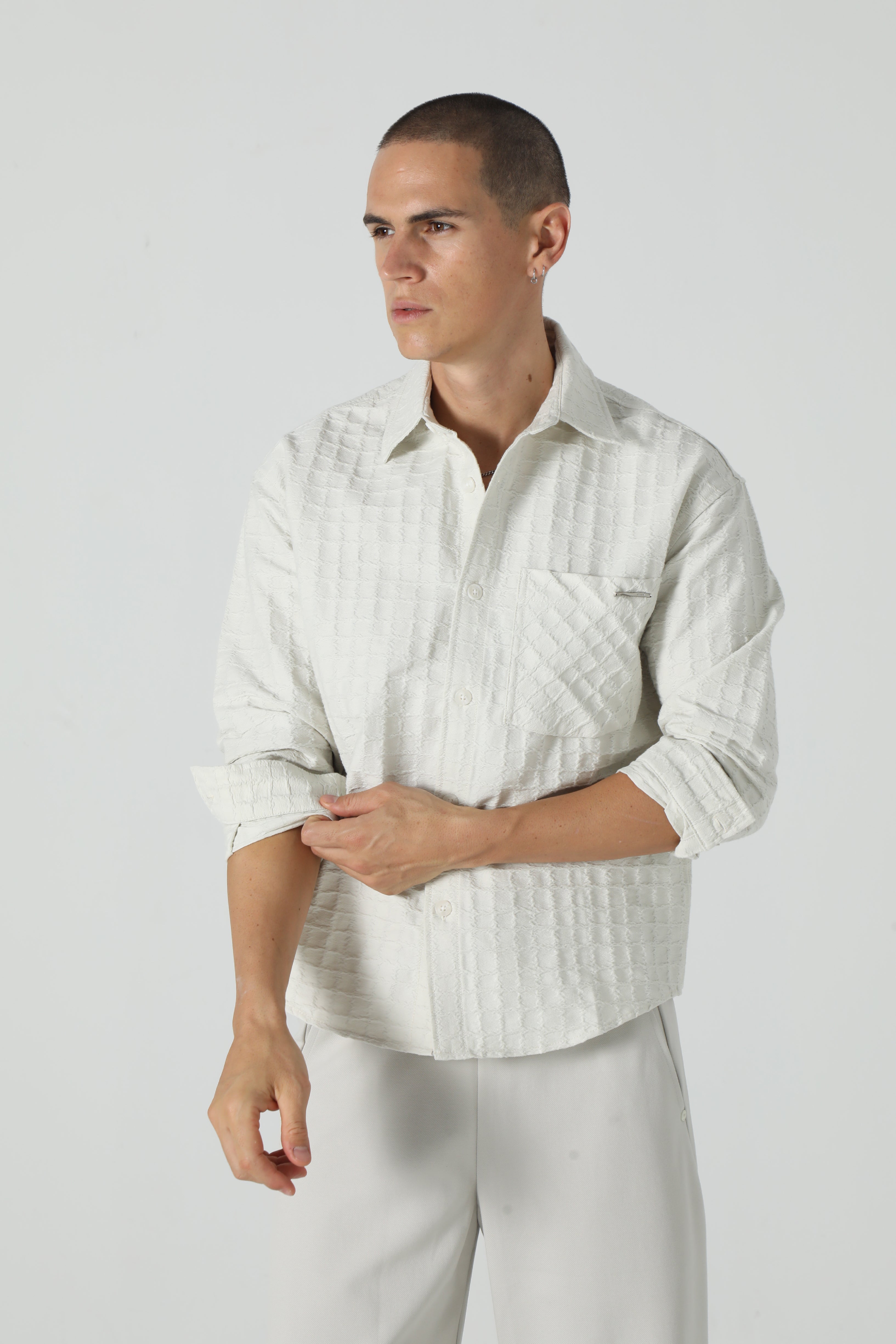 A regular-fit shirt in cotton-nylon blend with jacquard textured woven construction.