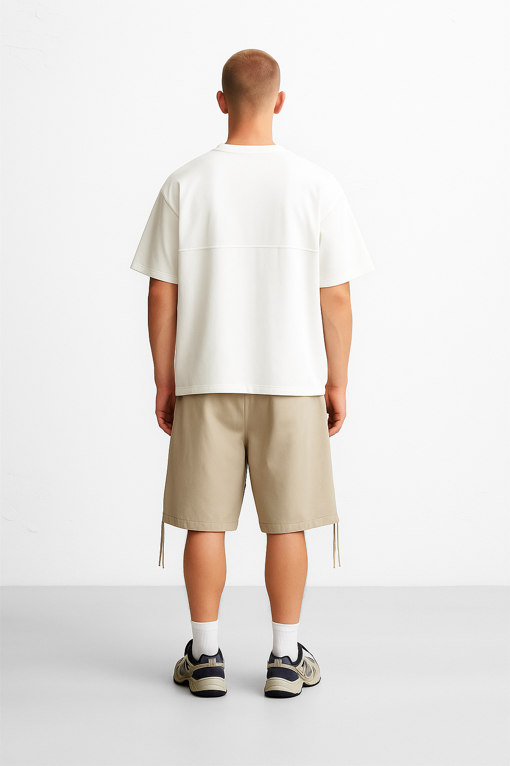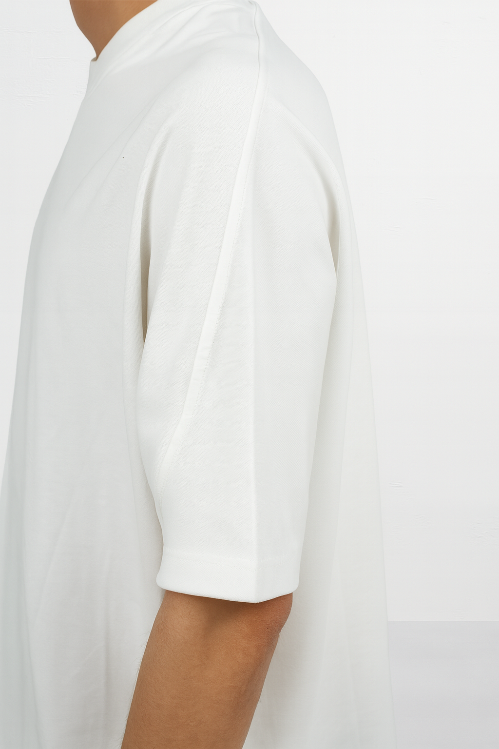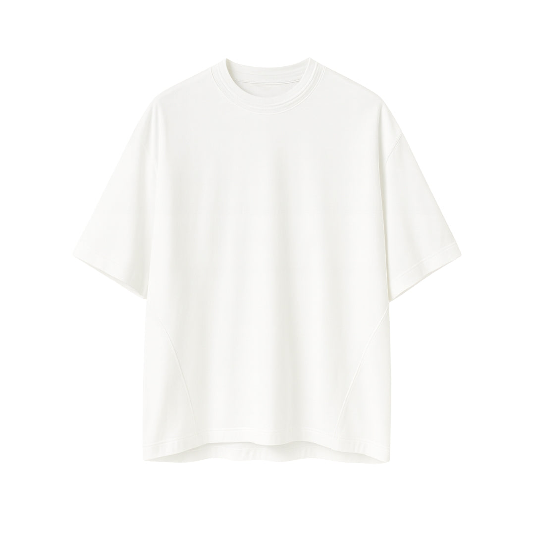 An oversized cotton tee with drop shoulder design. Features panel detailing and jacquard raised neckline construction.