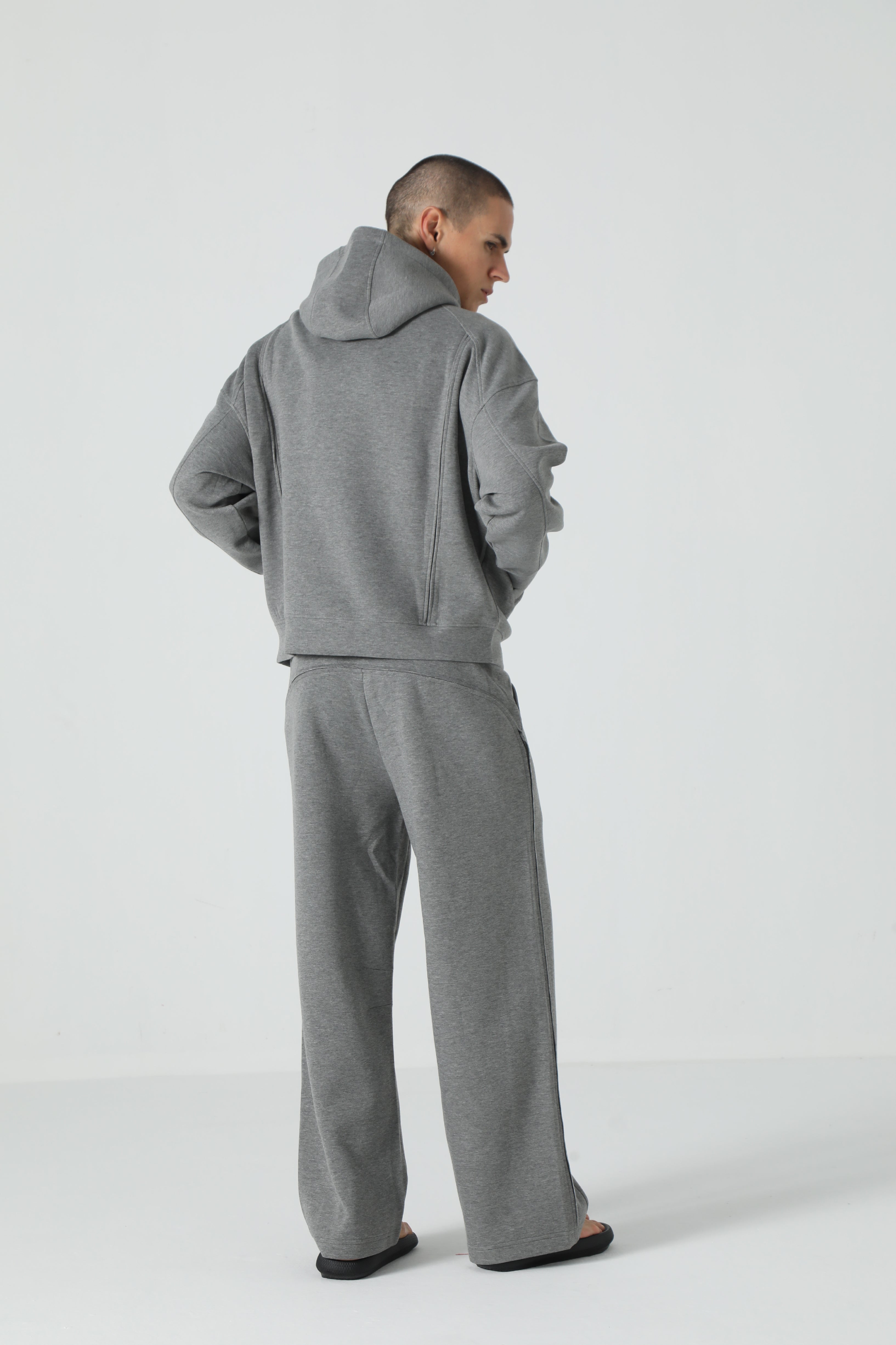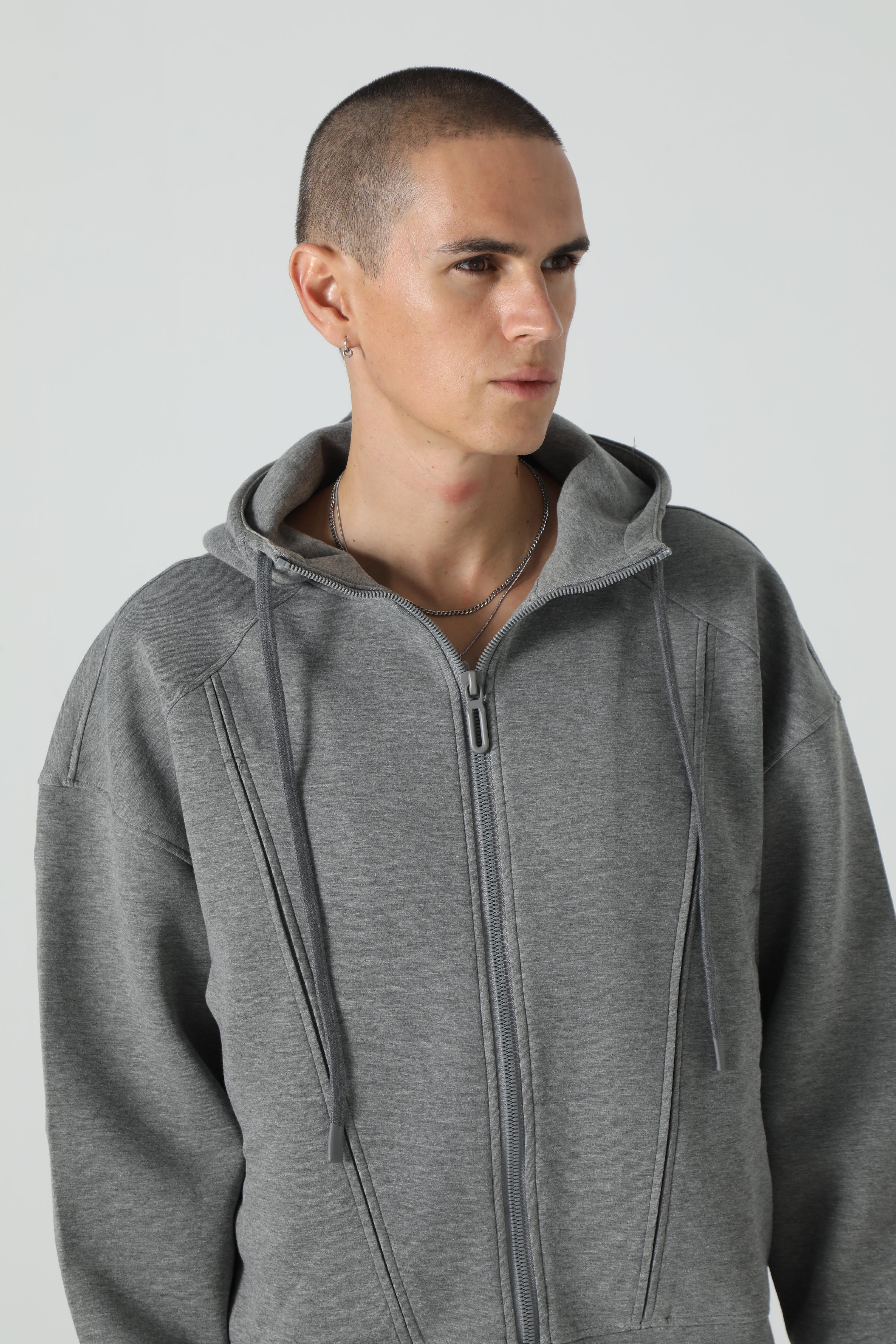 A relaxed-fit zip-through hoodie in a soft jersey blend, finished with raw-edge panel detailing.