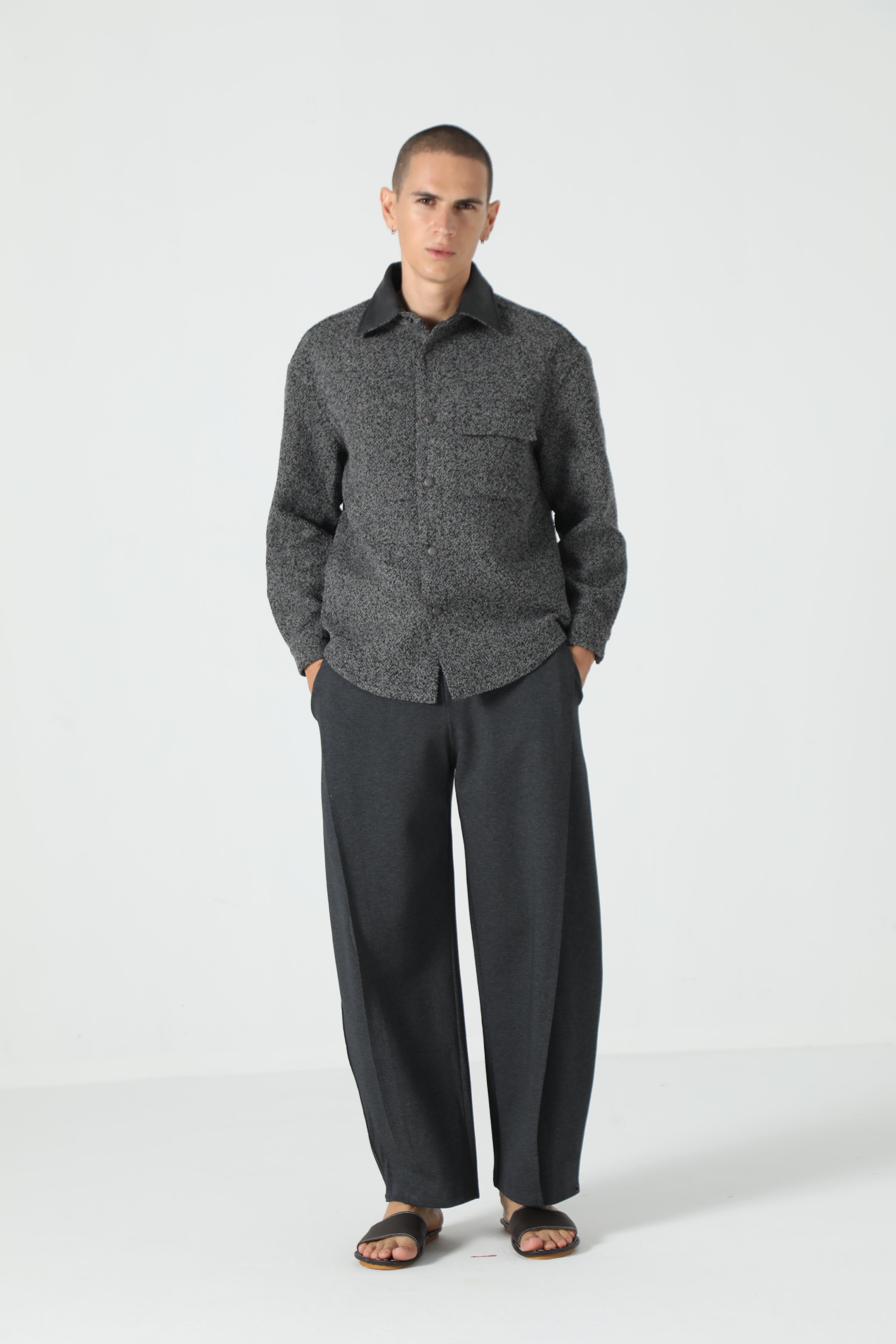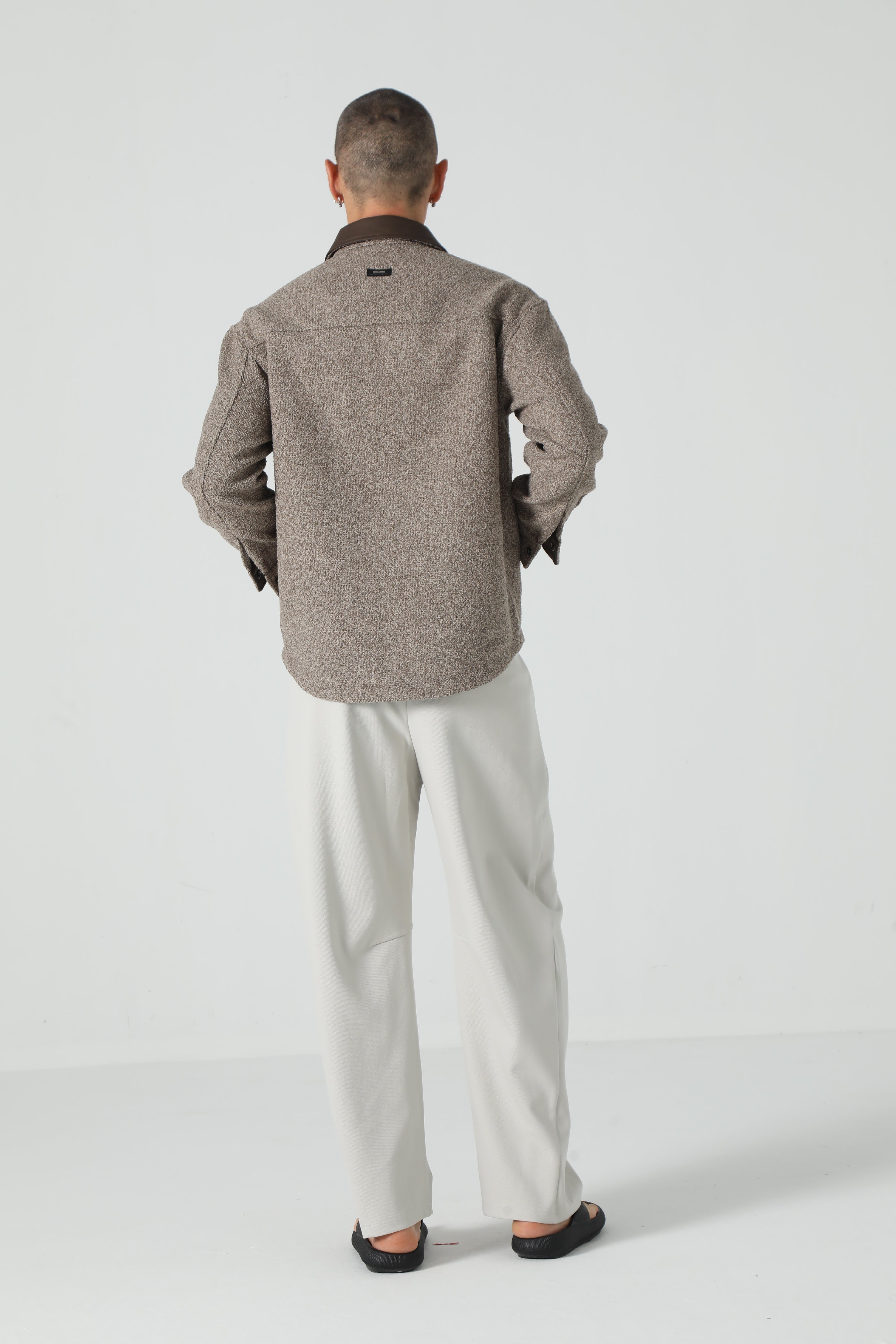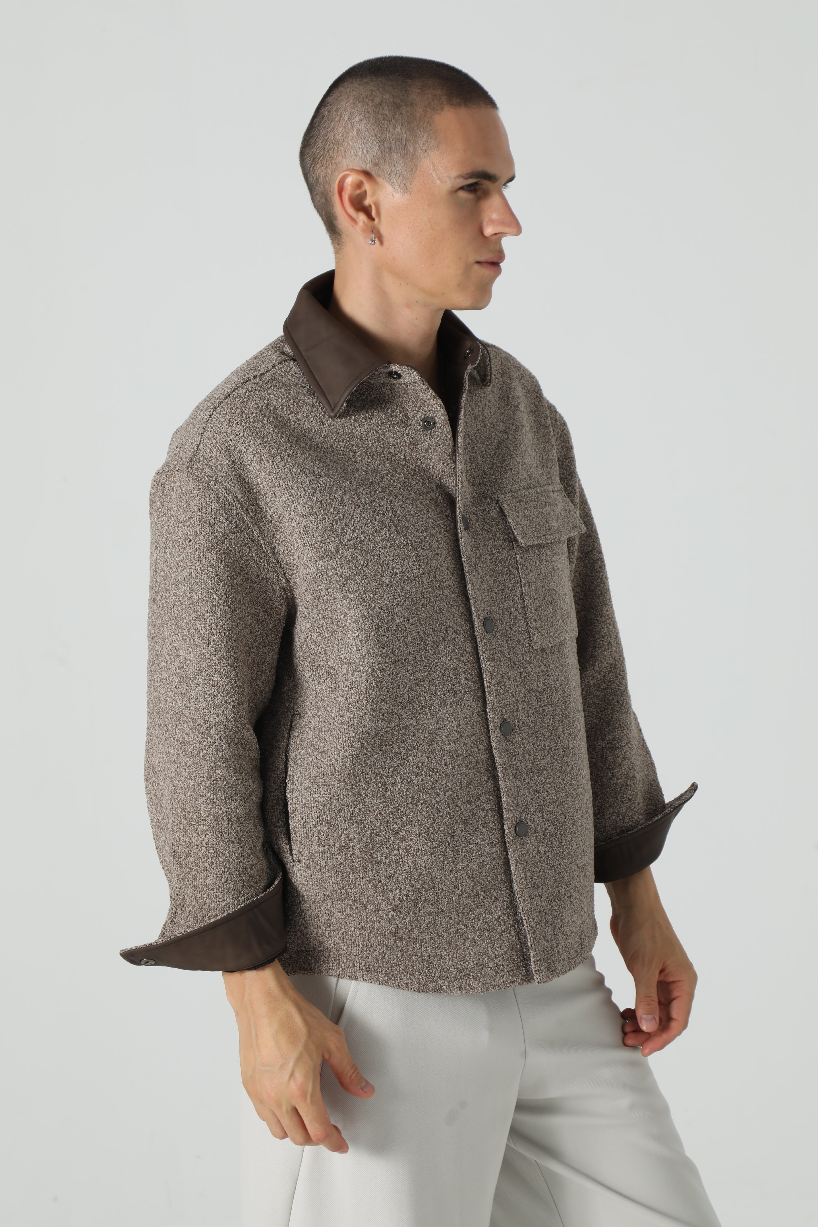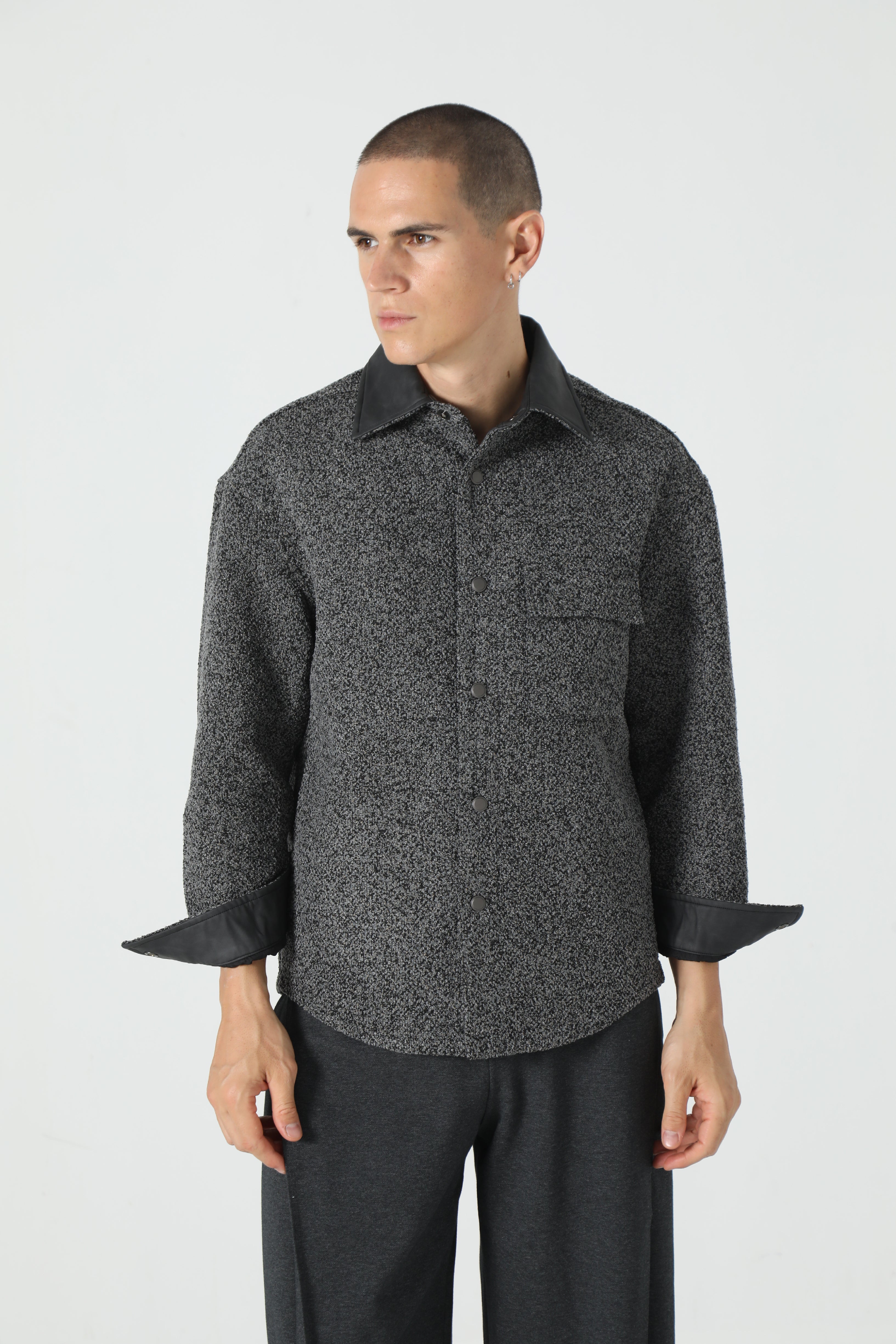 A regular-fit overshirt in textured woven fabric with chest pocket detail and PU collar.