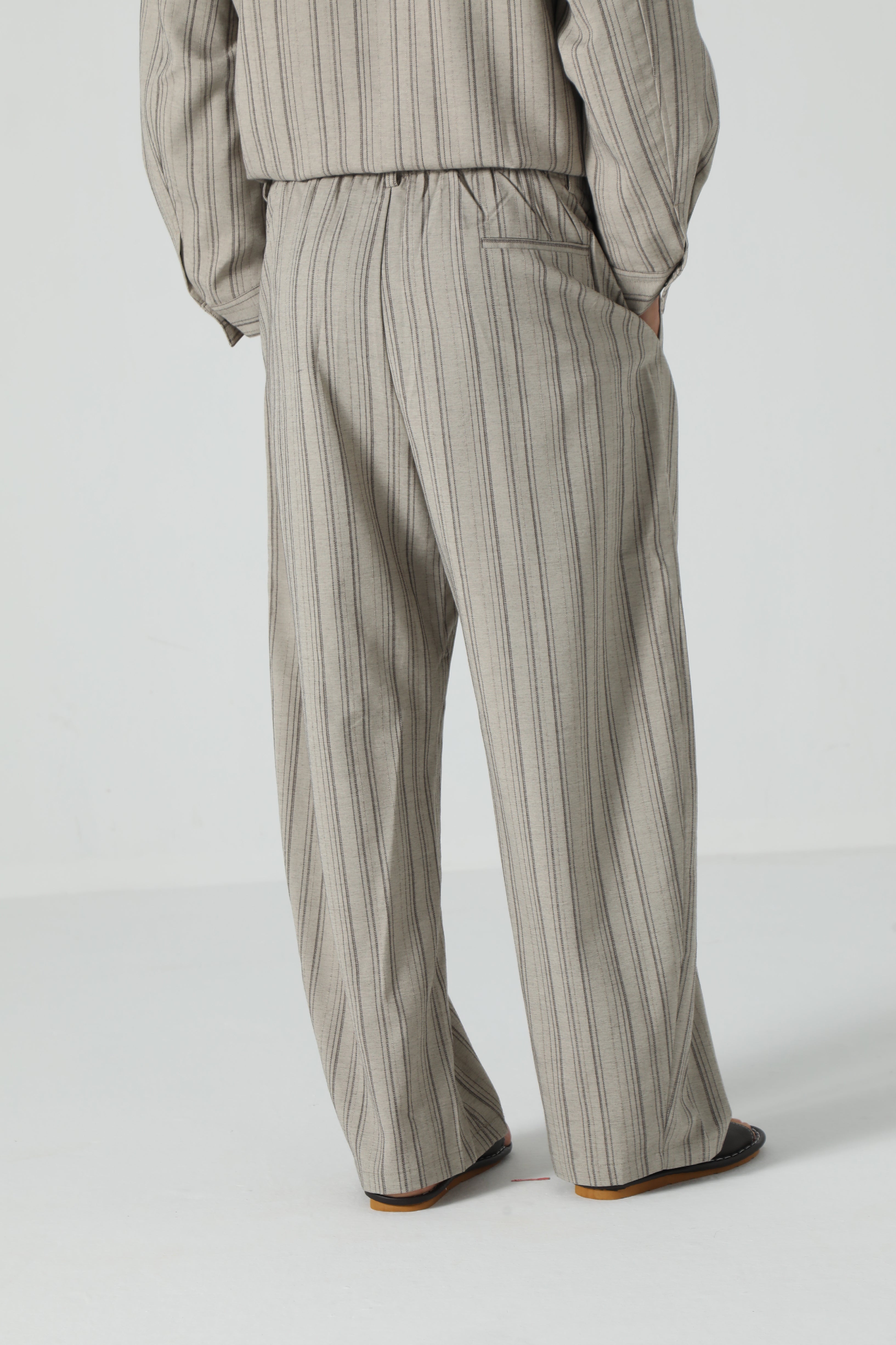 A relaxed-fit wide-leg trouser crafted in a textured woven fabric with subtle stripe detailing.