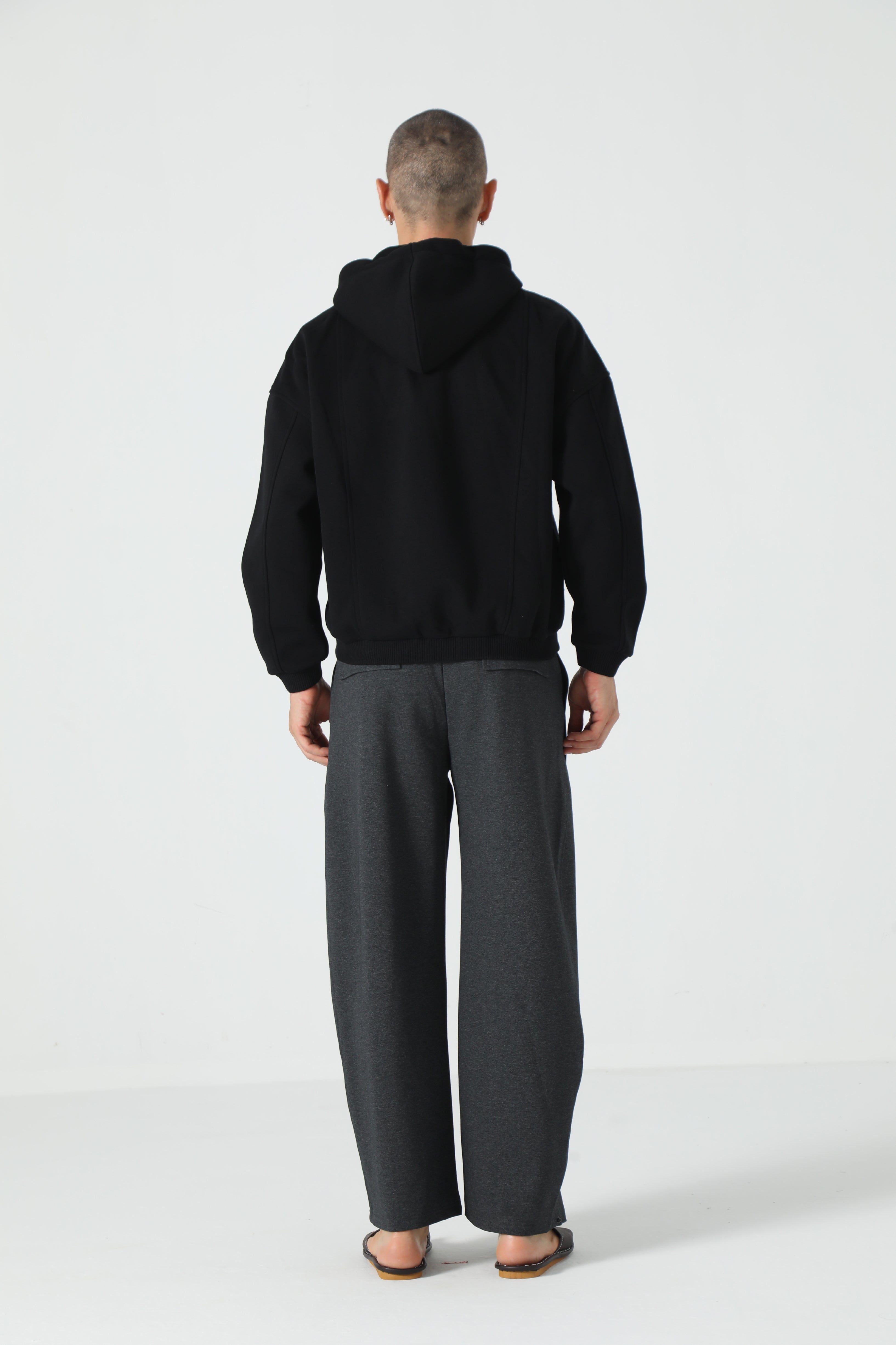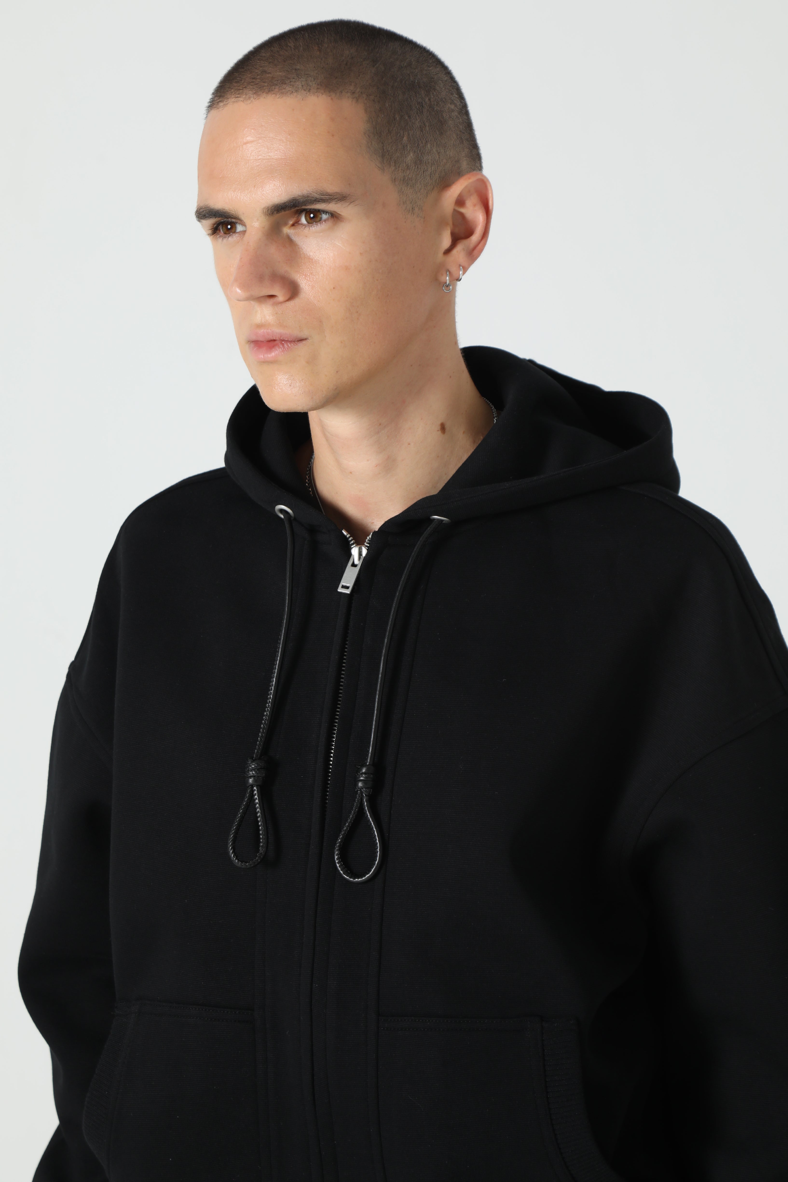 A regular-fit hoodie in textured jersey with zip-front closure, placket detailing, and drawcord hood.